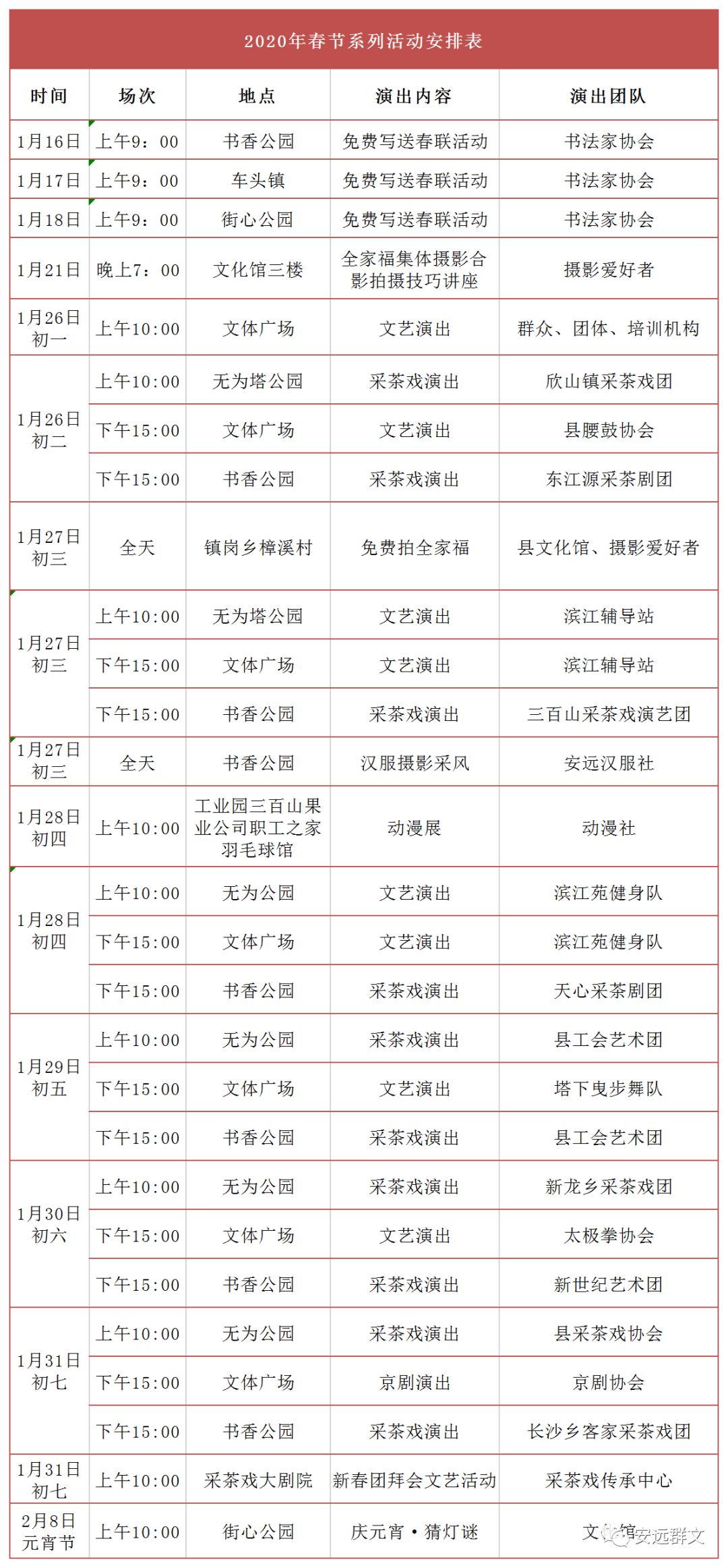 伴随着冬日里温暖的阳光,满怀着喜悦的心情,春节即将到来,一年一度的春节文化系列活动又要与大家见面了,“春节文化系列活动”是县文化馆面向全县人民群众开展的品牌活动,至今已有二十多年的历史了。今年举办的春节文化系列活动有:写送春联、摄影讲座、新春音乐会、免费拍全家福、采茶戏小舞台、动漫展、汉服摄影采风活动、新春团拜会文艺活动、庆元宵·猜灯谜等。此次活动由中共安远县委宣传部、安远县文化广电新闻出版旅游局主办,安远县文化馆承办。届时恭请广大群众及社会各界莅临指导!