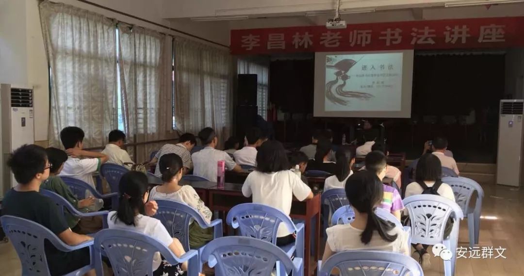 此次书法讲座特邀李昌林老师(江西省书法家协会会员,赣州市书法家协会会员,安远县书法家协会副主席)主讲,讲座内容分为三部分:古代书家及其经典碑帖、书法的临摹、临摹的要求和方法。李昌林老师根据自己学习书法的经验通俗易懂的阐述如何“进入书法”,从欣赏的角度出发,引导书法爱好者感悟书法艺术中的“雅”与“俗”,让书法爱好者快速了解书法。讲座时间虽短,前来学习的书法爱好者均表示感受颇深,受益匪浅,整个讲座内容安排紧凑,课堂气氛轻松活跃,深受书法爱好者赞许。